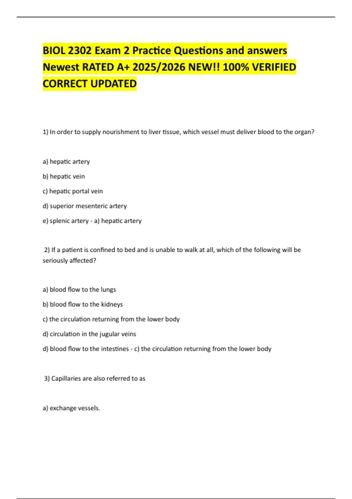 Exam (elaborations) BIOL 2302 Exam 2 Practice Questions and answers Newest RATED A+ 2025/2026 NEW!! 100% VERIFIED CORRECT UPDATED 2 Exam (elaborations) BIOL 2302 EXAM 1/ BIOL 2302 Exam 4 (Chapter 29: Heredity) With complete solution Rated A+ 2025/2026 NEW!! 3 Exam (elaborations) BIOL 2302 Final Exam/ Practice Questions for Biol 2302 Exam 3 Questi