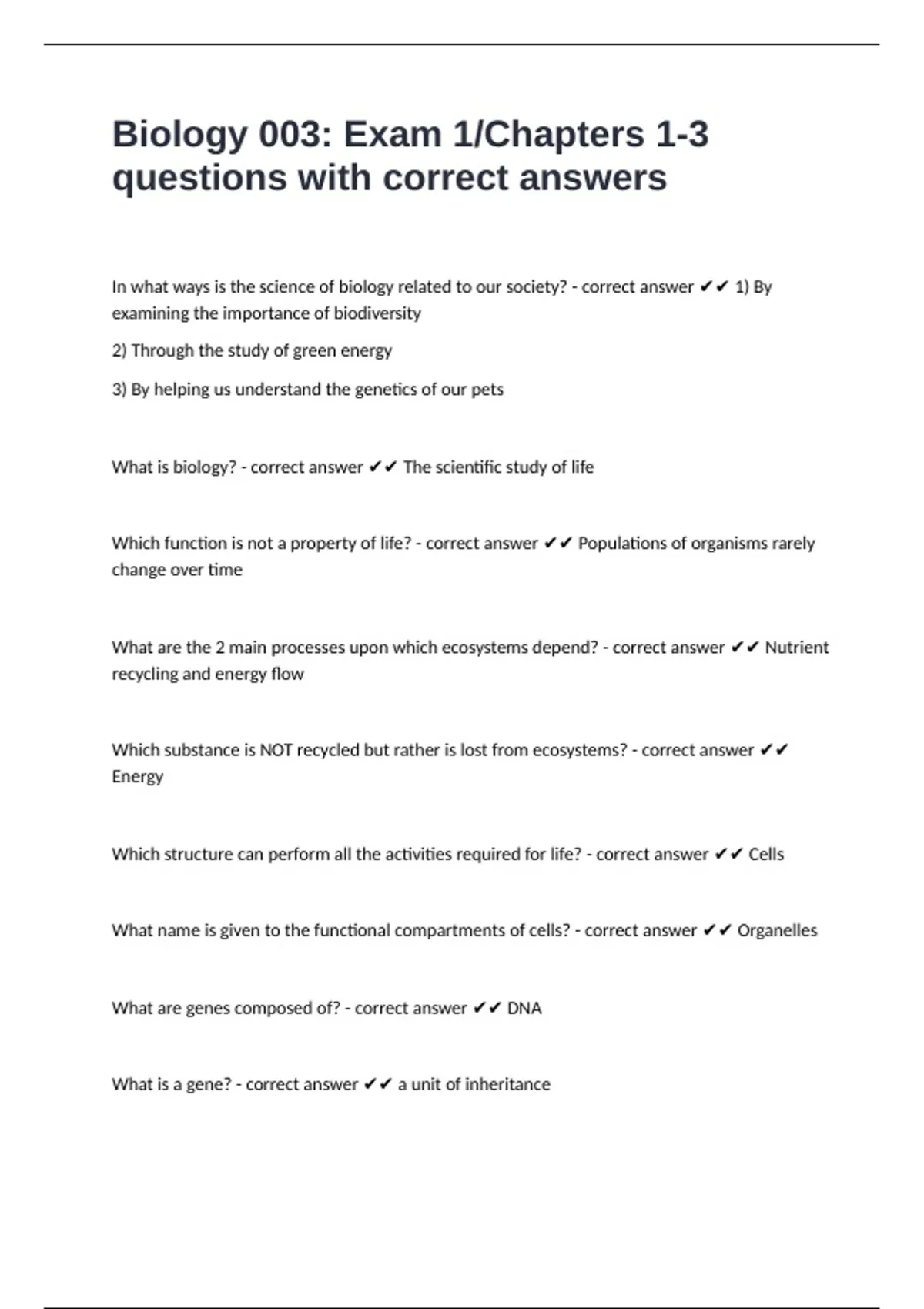 1 Exam (elaborations) Biology 003 UVM Exam 3 questions with complete solutions 2 Exam (elaborations) Biology 003 Exam -1 questions well answered 3 Exam (elaborations) BIO 003 EXAM 1 questions with correct answers 4 Exam (elaborations) Bio 003 Exam 2 questions with verified answers 5 Exam (elaborations) Biology 003 - Exam 1 questions n answers r