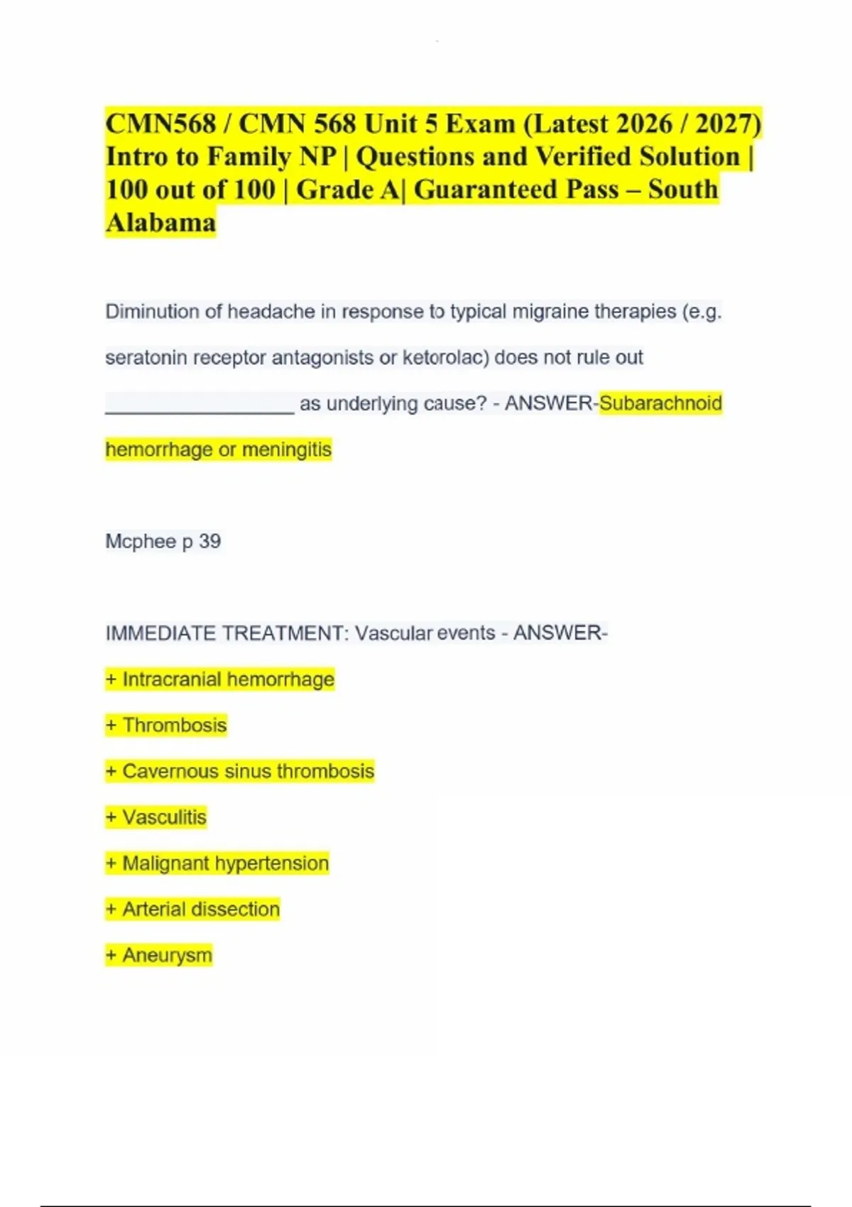 CMN568 / CMN 568 Unit 4 And Unit 5 Exams |Intro to Family NP | Questions and Verified Answers | 100 out of 100 | Grade A |Latest Update 2026 / 2027|South Alabama