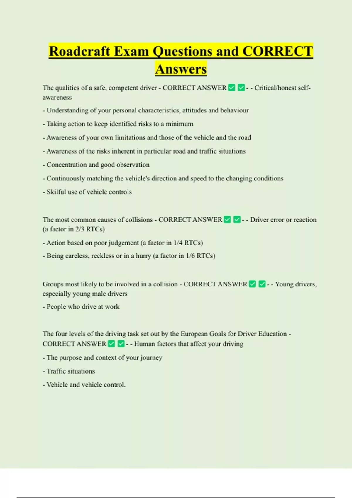 Roadcraft Bundled Exam Questions WITH CORRECT Answers