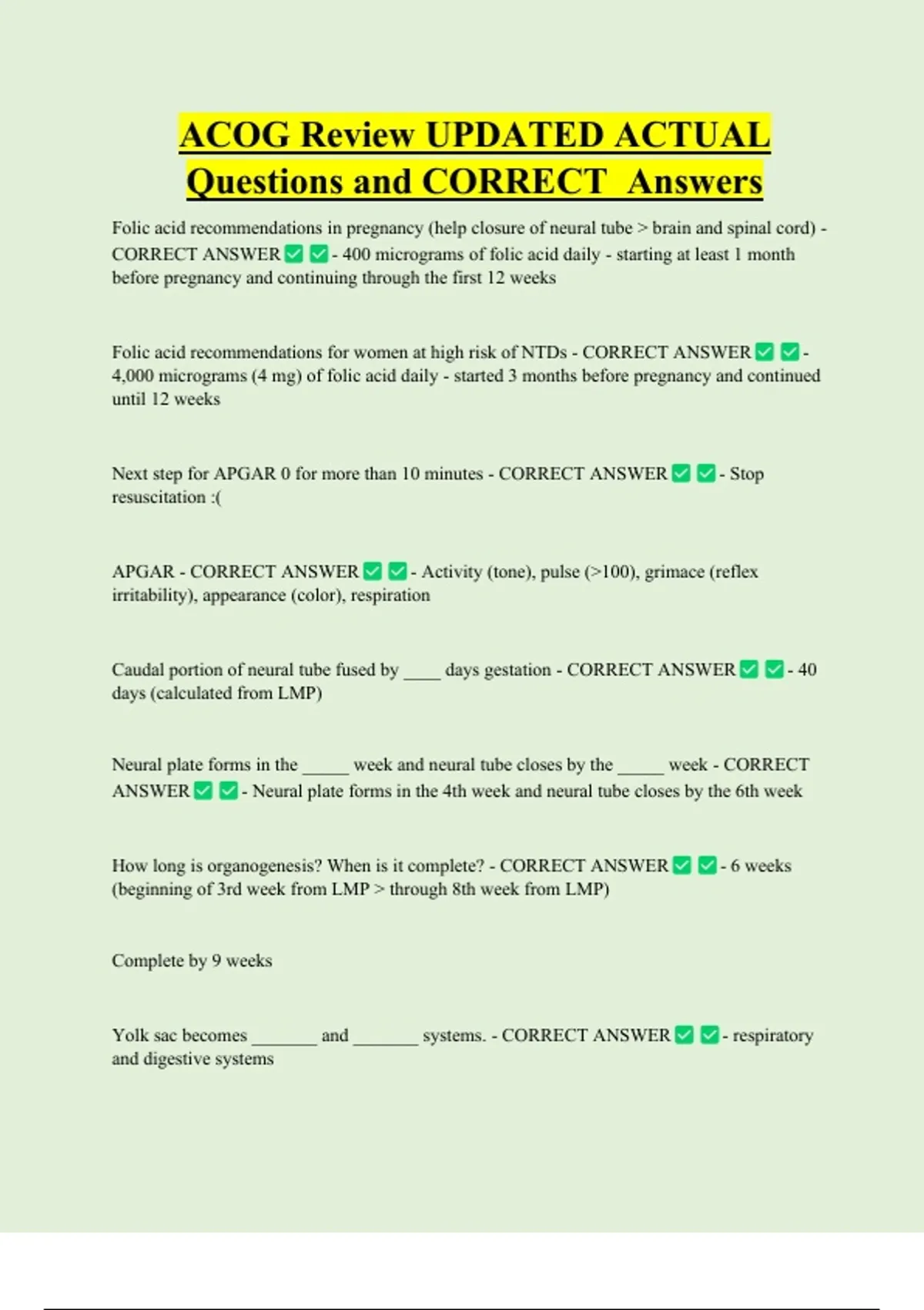 ACOG Notes UPDATED ACTUAL Questions and CORRECT Answers