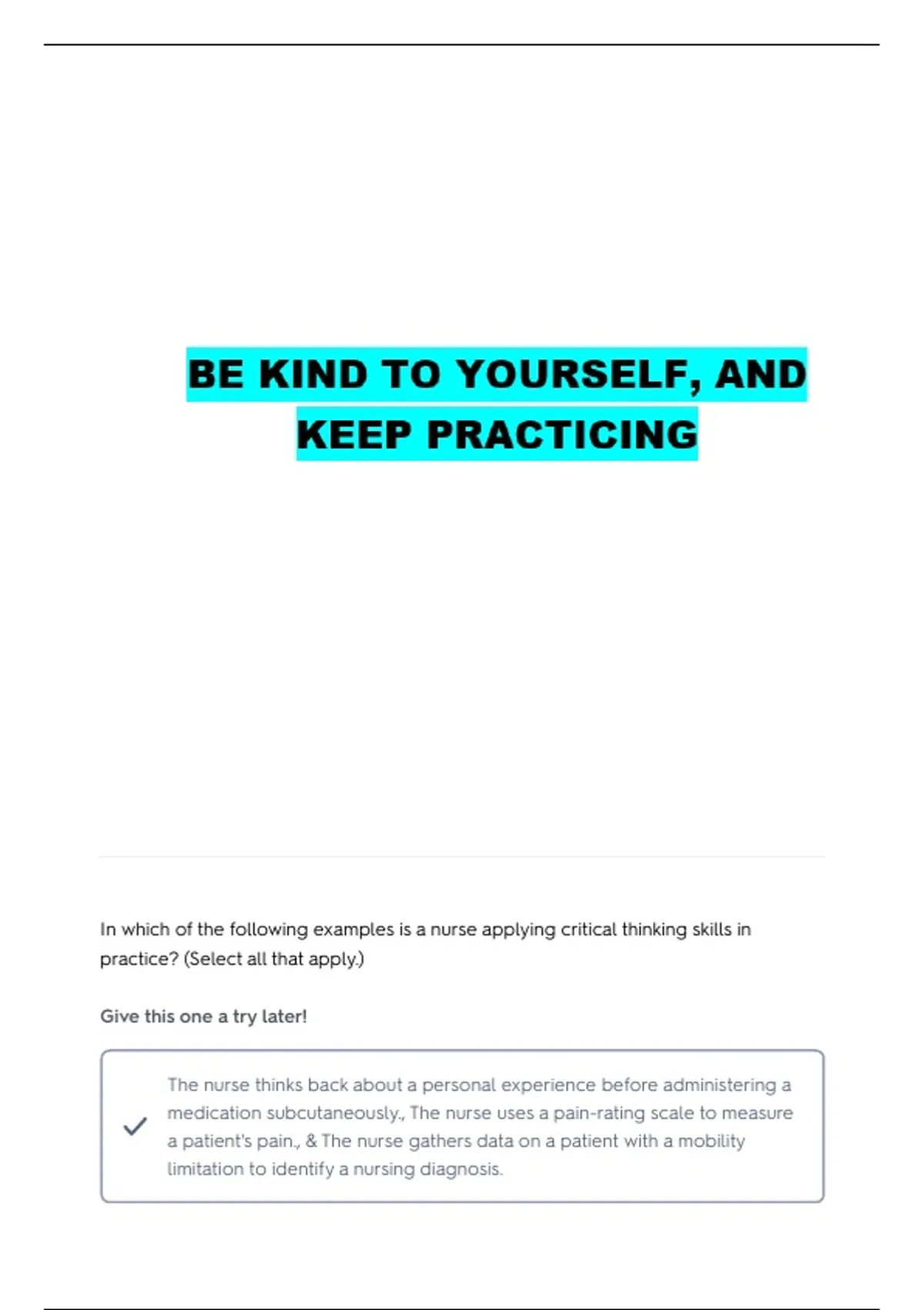 RNSG 1341 EXAM 1 PRACTICE QUESTIONS WITH 100% CORRECT ANSWERS