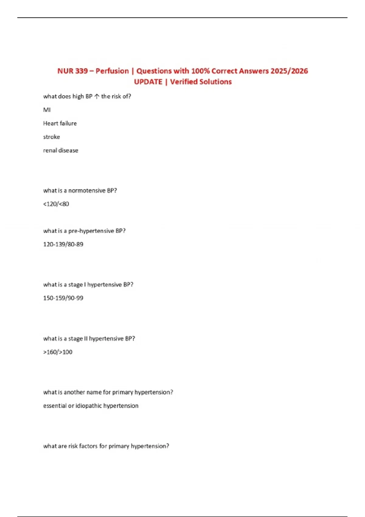BUNDLE FOR NUR 339 EXAM | Questions with CORRECT Answers 2025/2026 UPDATE | Verified Solutions