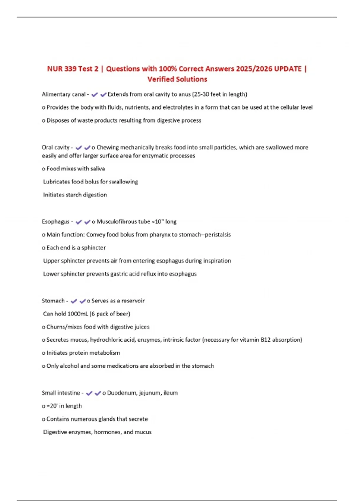 NUR 339 Test 2 | Questions with 100% Correct Answers 2025/2026 UPDATE | Verified Solutions