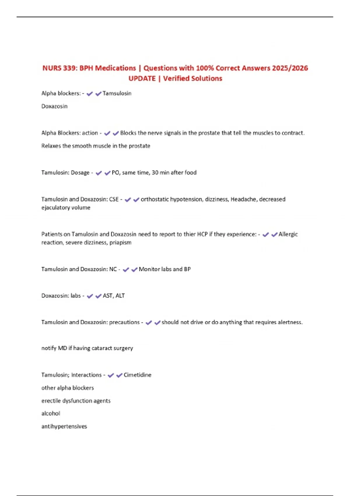 BUNDLE FOR NURS 339 EXAM | Questions with CORRECT Answers 2025/2026 UPDATE | Verified Solutions