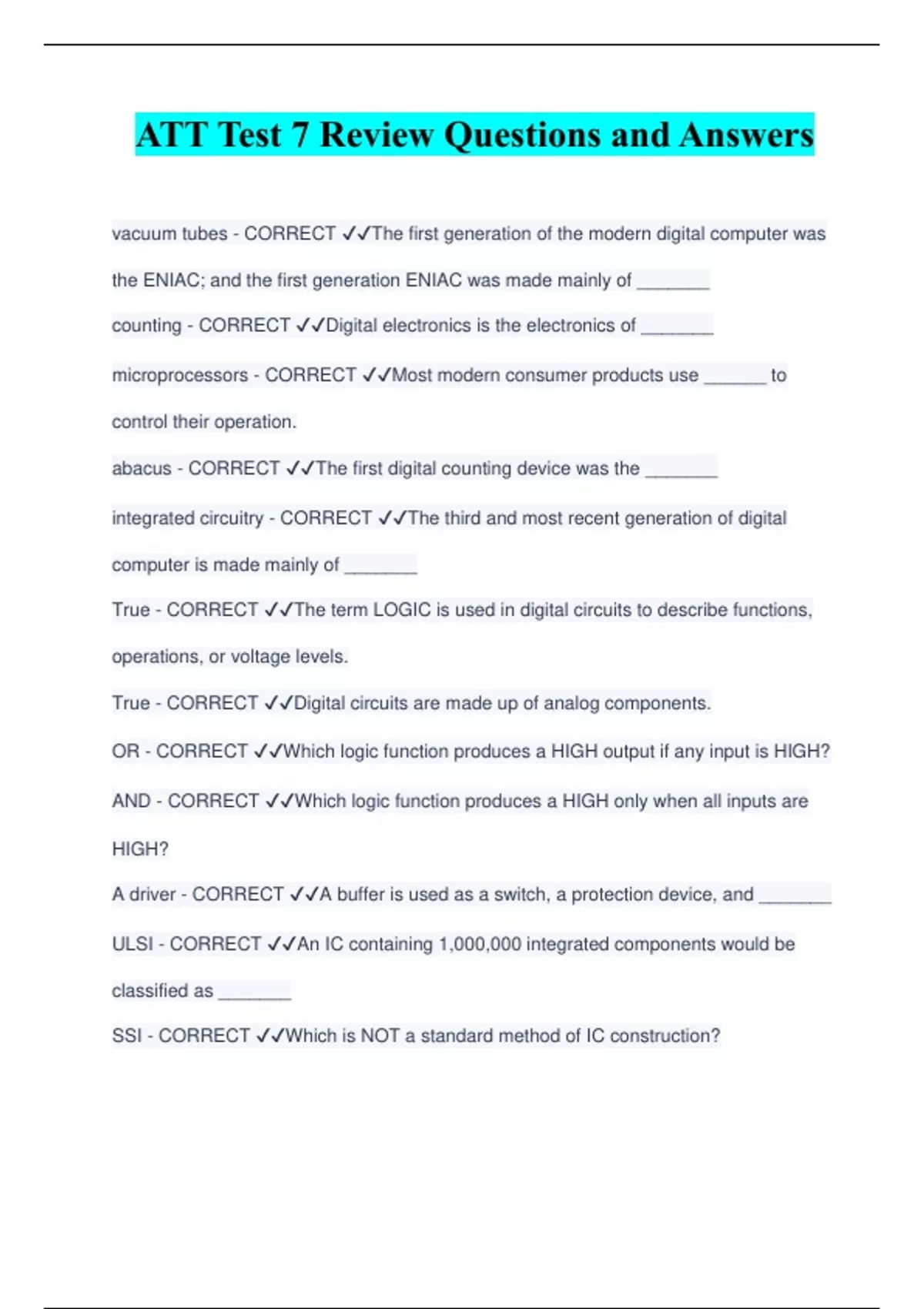 ATT Week 11 Test (FC) Questions and Answers 2024