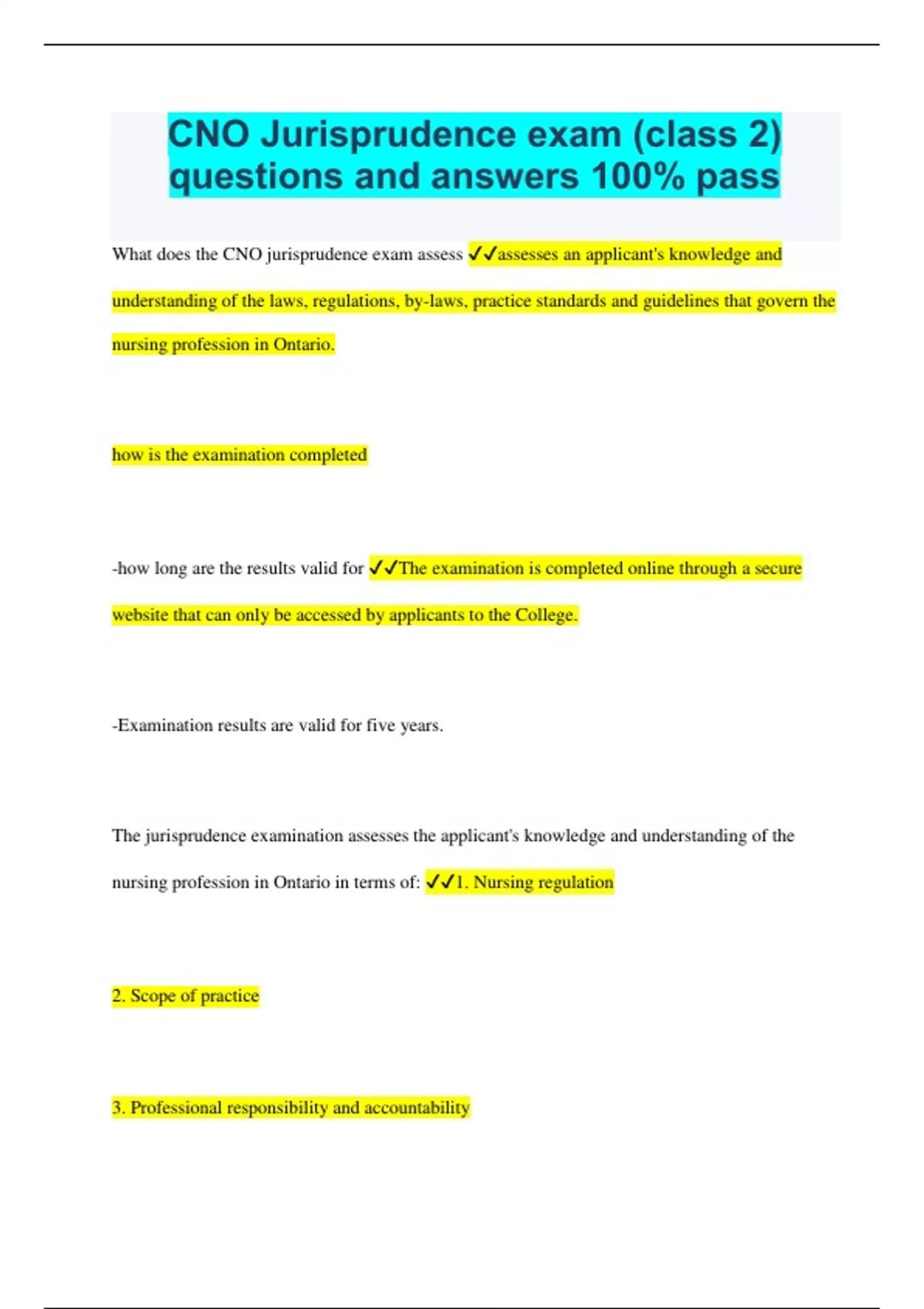 CNO Jurisprudence exam (class 2) questions and answers 100% pass