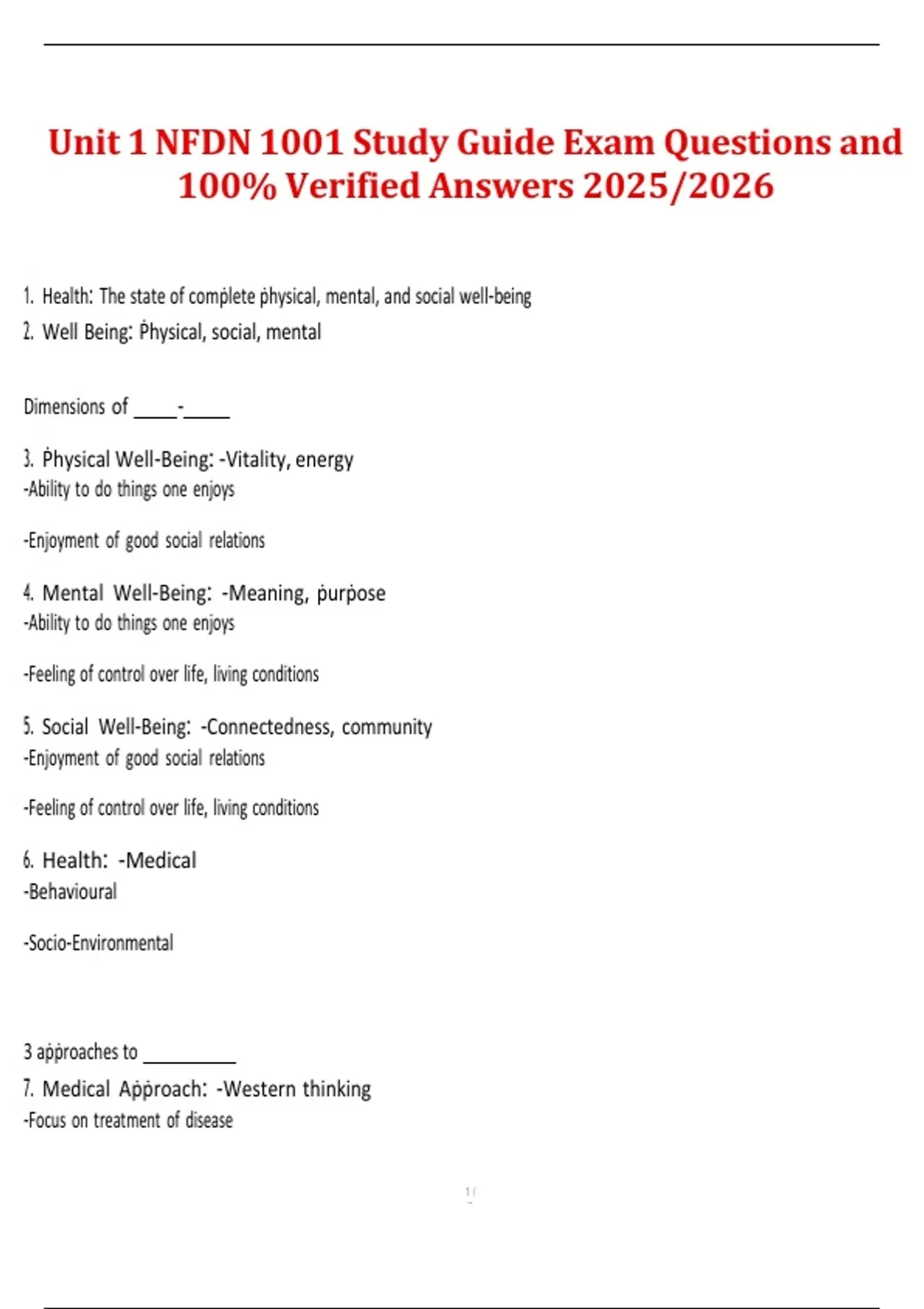 Package deal for NFDN 1001 Final Exam – Questions and Correct Answers (100% Guaranteed Pass) 2025/2026
