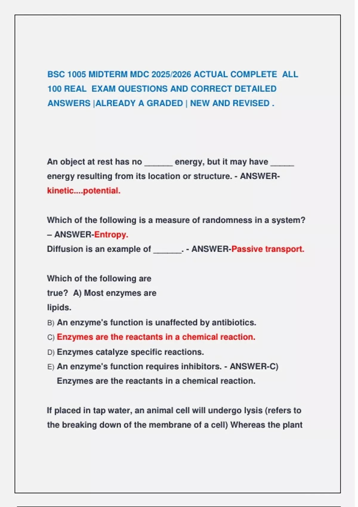 BSC 1005 Exam 1 Review 2025/2026 Actual Complete Real Exam Questions And Correct Answers BSC 1005- Exam 1 Review 2025/2026 Actual Complete Real Exam BSC 1005 Exam 1 Review 2025/2026 BSC 1005 Exam 1 Review EXAM 2025/2026 BSC 1005 MIDTERM MDC 2025/2026 BSC1005 Final Exam 2025/2026 Actual Complete Real Exam Questions And Verified Answers |
