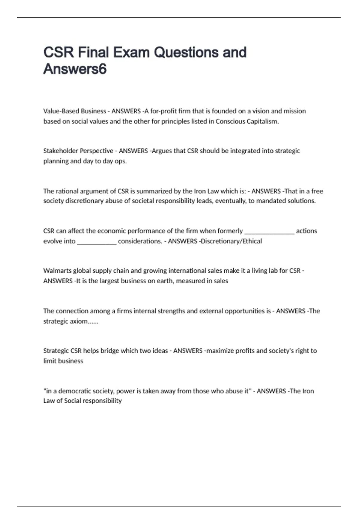 Written by students who passed Immediately available after payment Read online or as PDF Wrong document? Swap it for free 4.6 TrustPilot