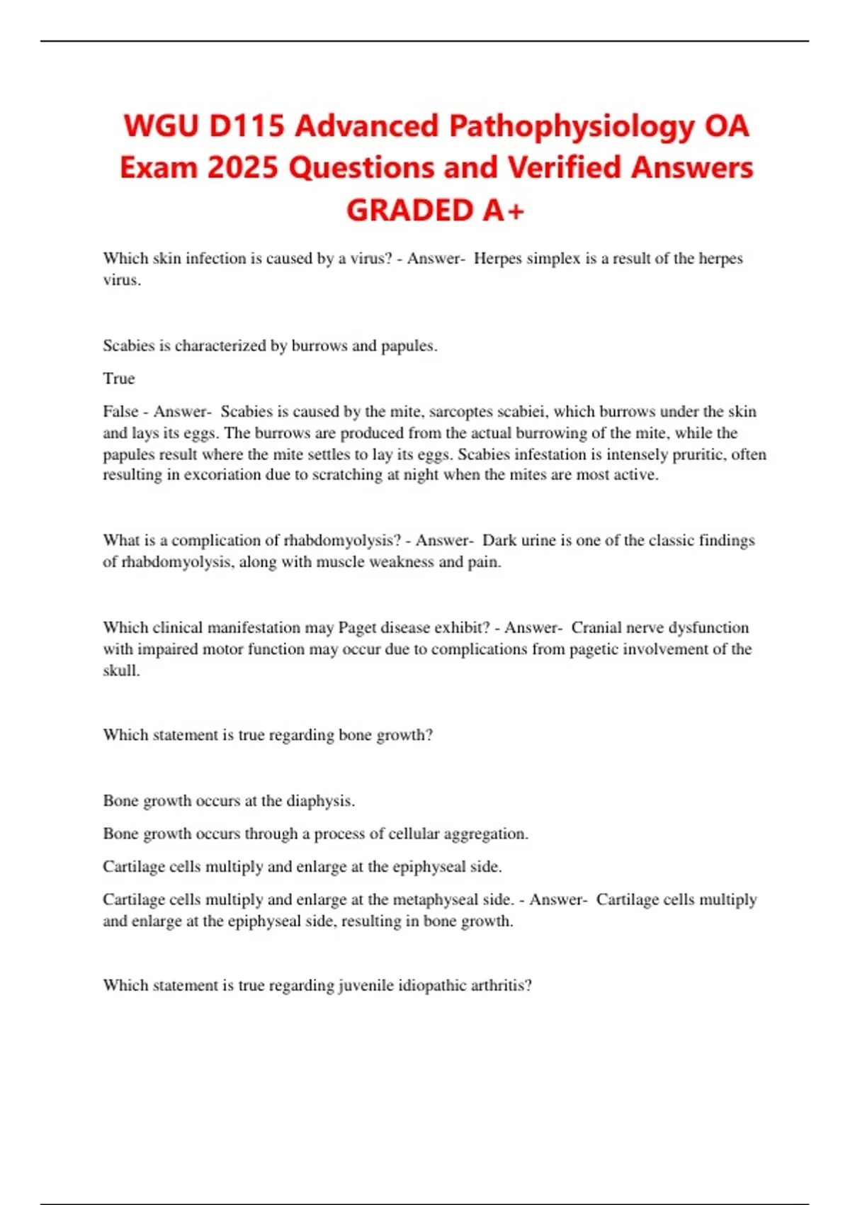WGU D115 Advanced Pathophysiology Test bank graded A+ 2025: neurology, reproductive, endocrine, respiratory, integumentary