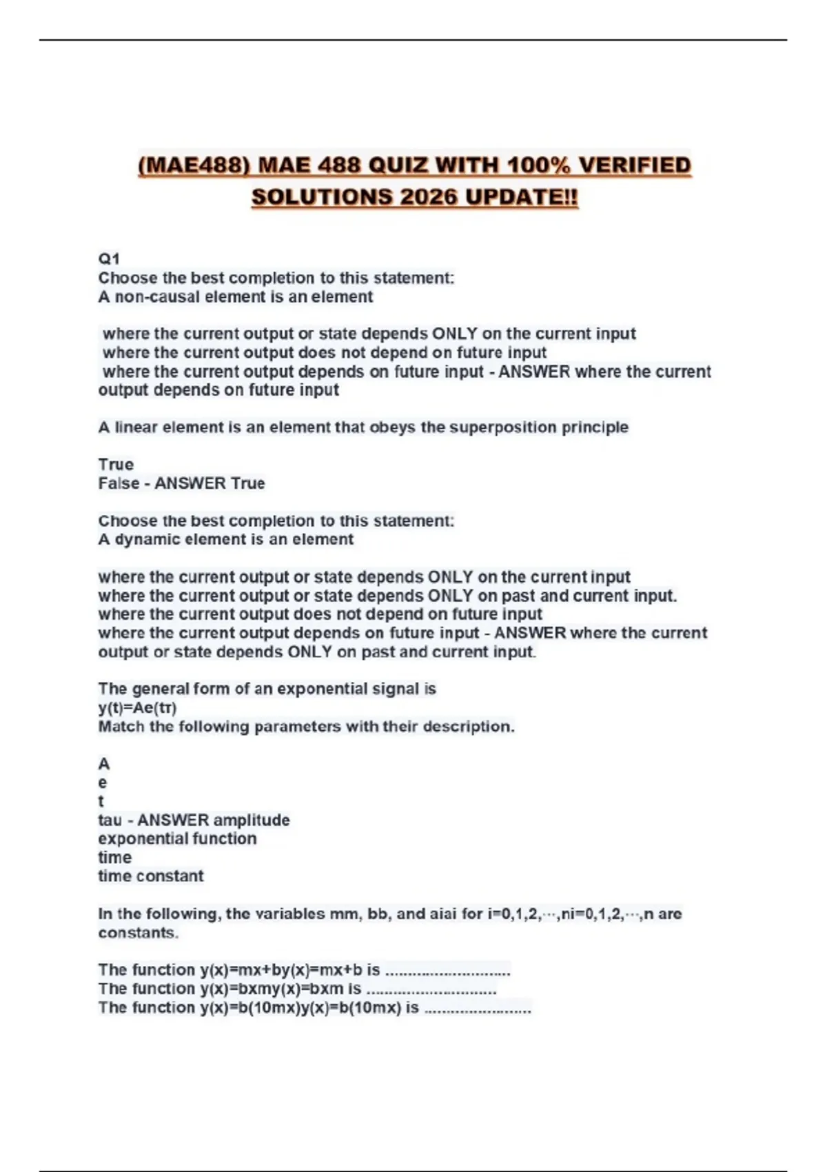 MAE 488 STUDY SET 2026 UPDATE WITH ACCURATE SOLUTIONS!!