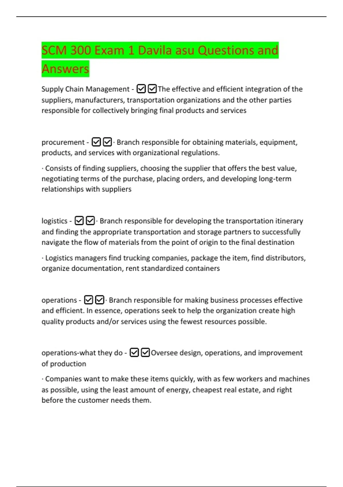 [Show more]SCM 300 Exam 2 (Davilla) Questions and Answers