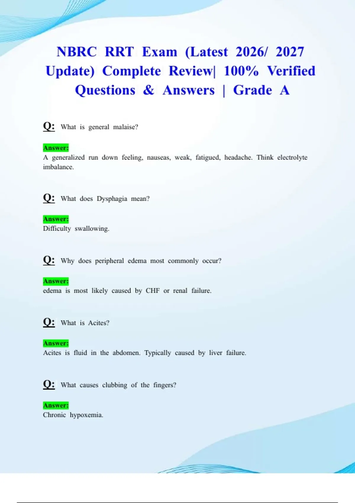 NBRC/ CRT/ RRT Exam (Latest 2026/ 2027 Update) Complete Guide| 100% Verified Questions & Answers | Grade A