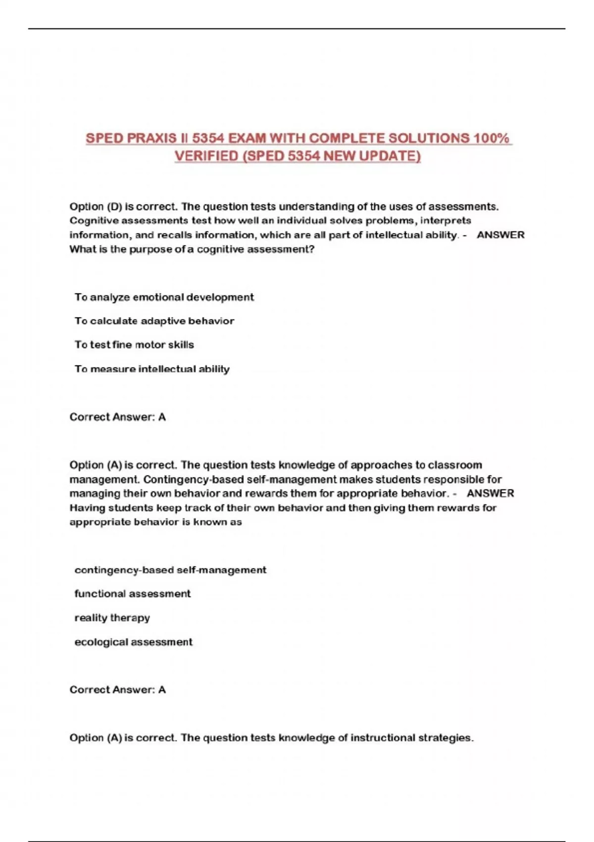 SPED PRAXIS II 5354 EXAM WITH COMPLETE SOLUTIONS 100% VERIFIED (SPED 5354 NEW UPDATE)
