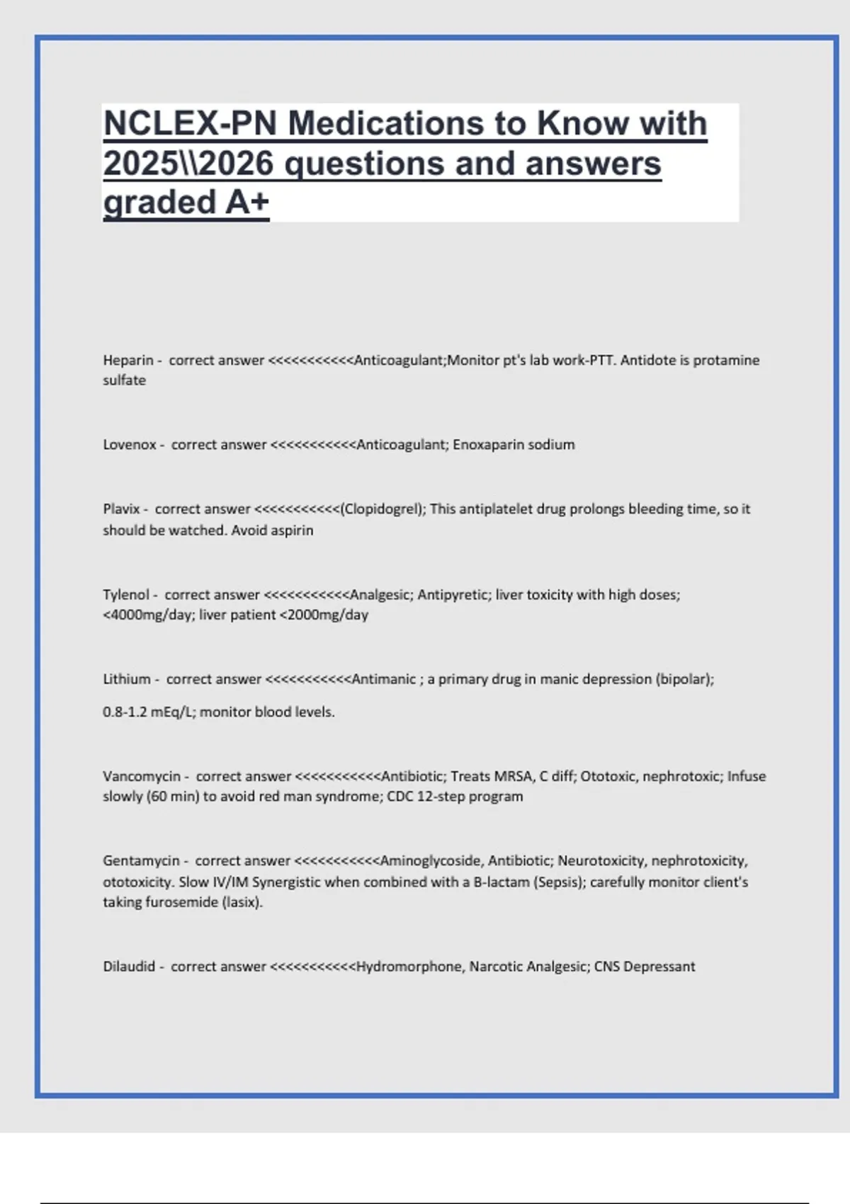Exam (elaborations) NCLEX Style Exam 2025 | Latest Questions with Correct Detailed Answers & Rationales [A+ Verified] 2 Exam (elaborations) NCLEX-PN Medications to Know: Heparin | 2025/2026 Updated Questions and Answers Graded A+ 3 Exam (elaborations) Pharmacology NCLEX Questions 2025/2026 | 100% Verified Questions and Correct Answers [Comprehen