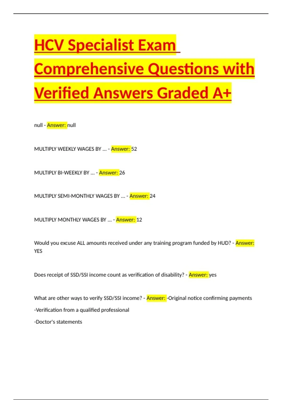 Housing Choice Voucher Specialist Comprehensive Questions with Verified Answers Graded A+ Package Deal