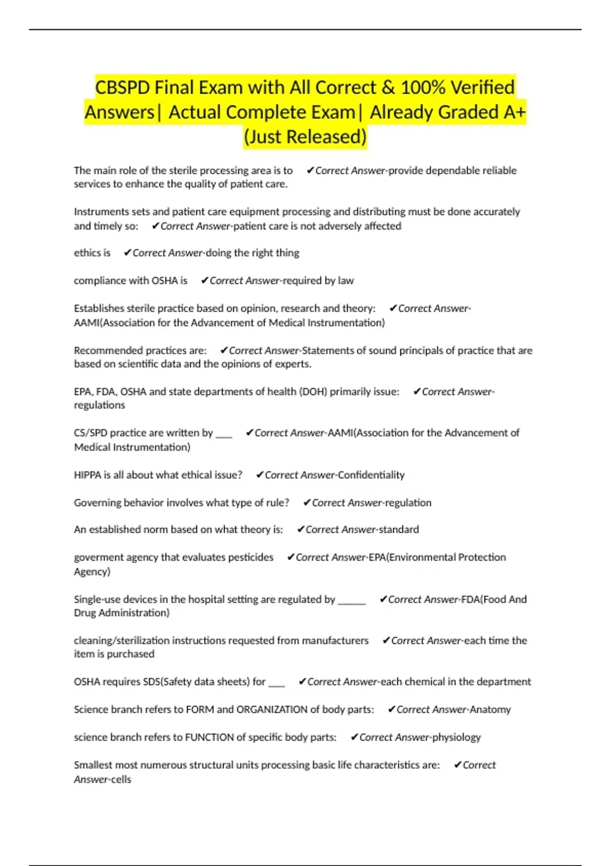 This comprehensive CBSPD Exam Package is designed to help sterile processing professionals prepare effectively for the Certified Board for Sterile Processing and Distribution (CBSPD) certification exam. It includes detailed study notes, equipment and instrumentation overviews, decontamination and sterilization procedures, and realistic practice.