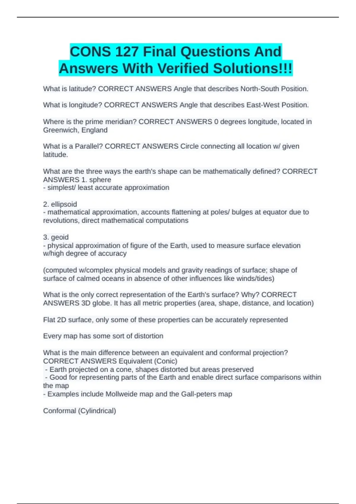 CONS 127 Exam Questions And Answers | Solved Cons 127 Finals Exam Questions And Answers Already Graded A+ CONS 127 Exam Questions With Correct Answers Already Passed!!! CONS 127 Final Exam Questions With All Correct Answers 2025 Latest Update!!!