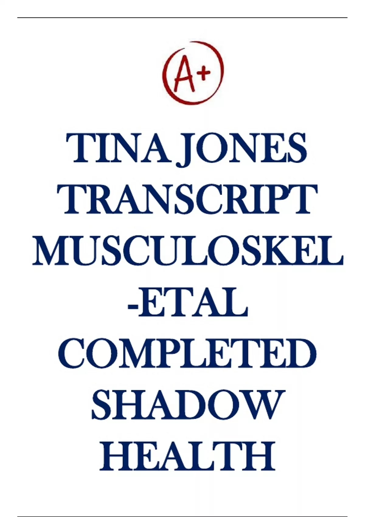 TINA JONES TRANSCRIPT MUSCULOSKEL -ETAL COMPLETED SHADOW HEALTH