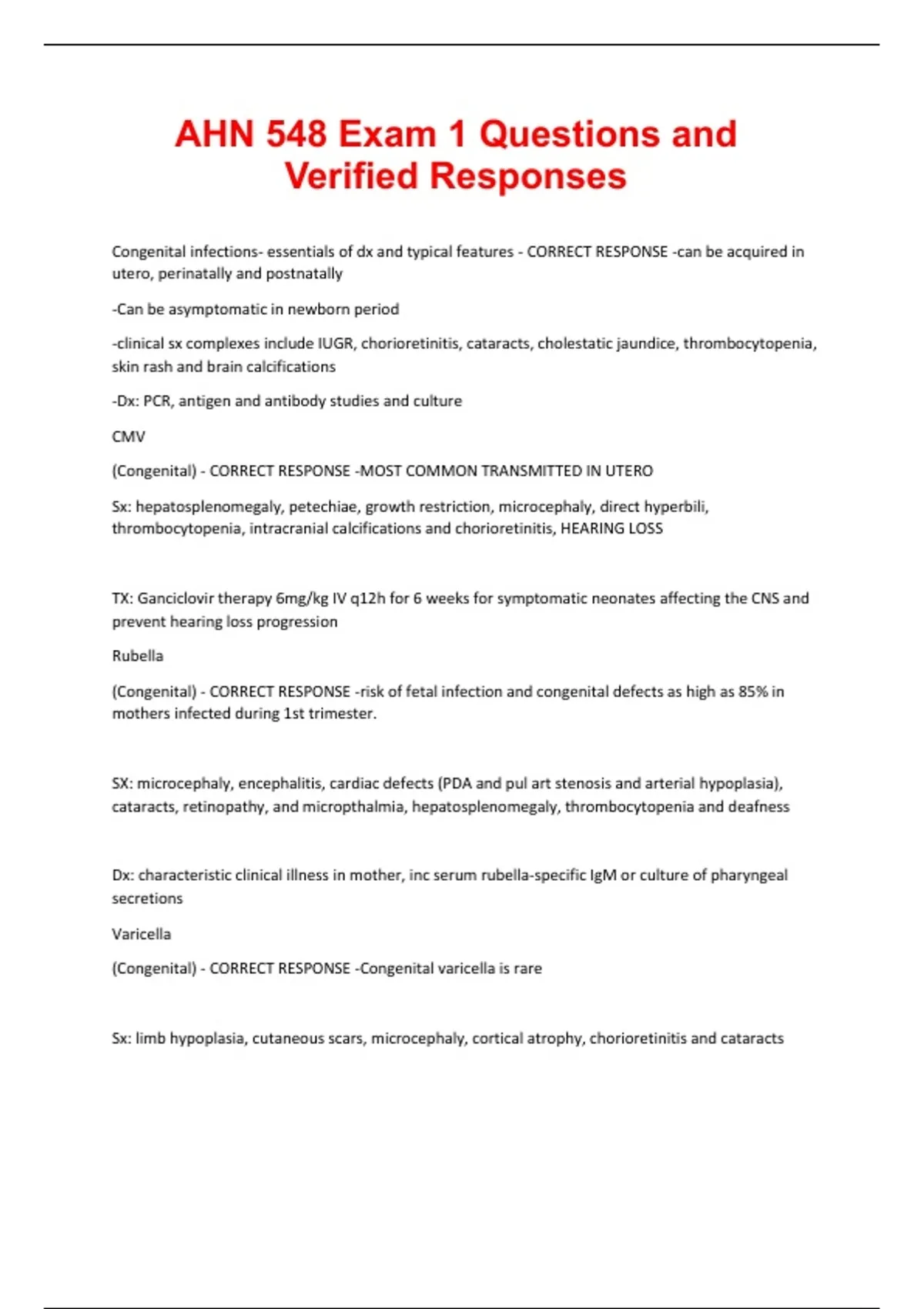 AHN 548 Exams Questions and Verified Responses