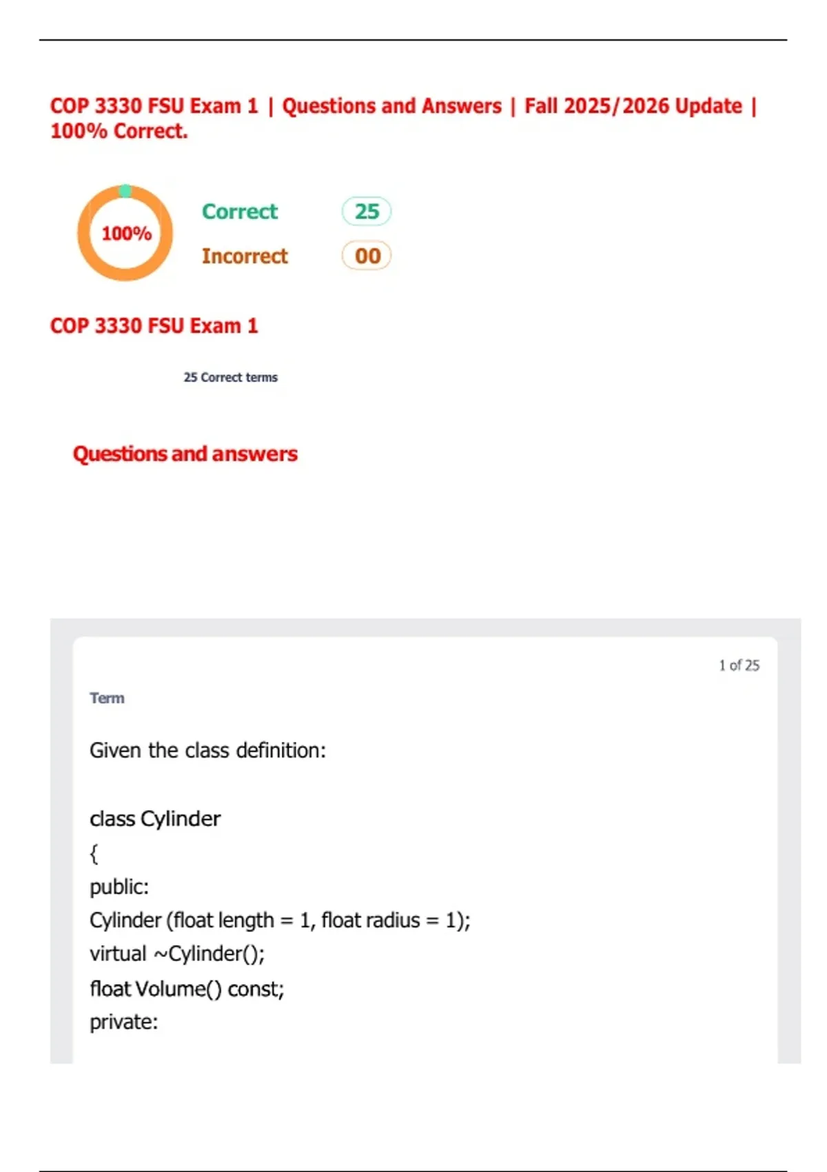 COP 3330 Final Exam | Questions and Answers | Fall 2025/2026 Update COP 3330 Exam 2 | Questions and Answers | Fall 2025/2026 Update COP 3330 FSU Exam 1 | Questions and Answers | Fall 2025/2026 Update