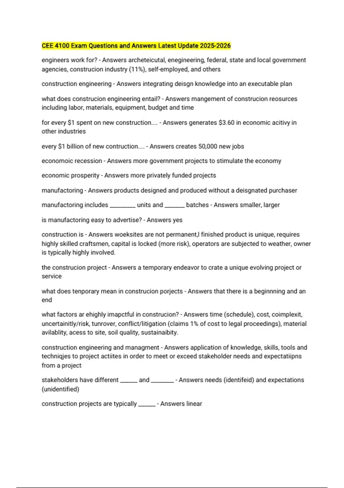 CEE 4100 BUNDLED EXAMS QUESTIONS ANSWERED CORRECTLY LATEST UPDATE 2025/2026