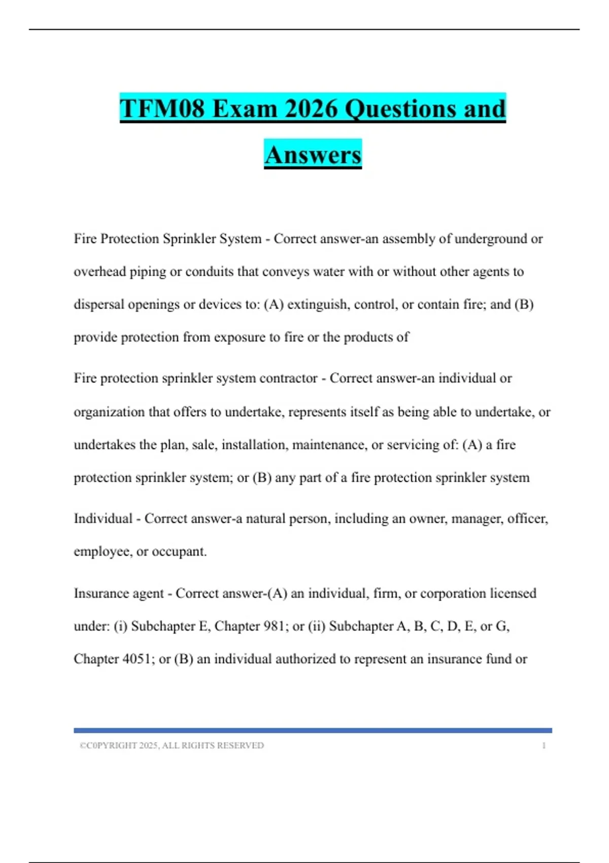 TFM08 Exam 2026 Questions and Answers