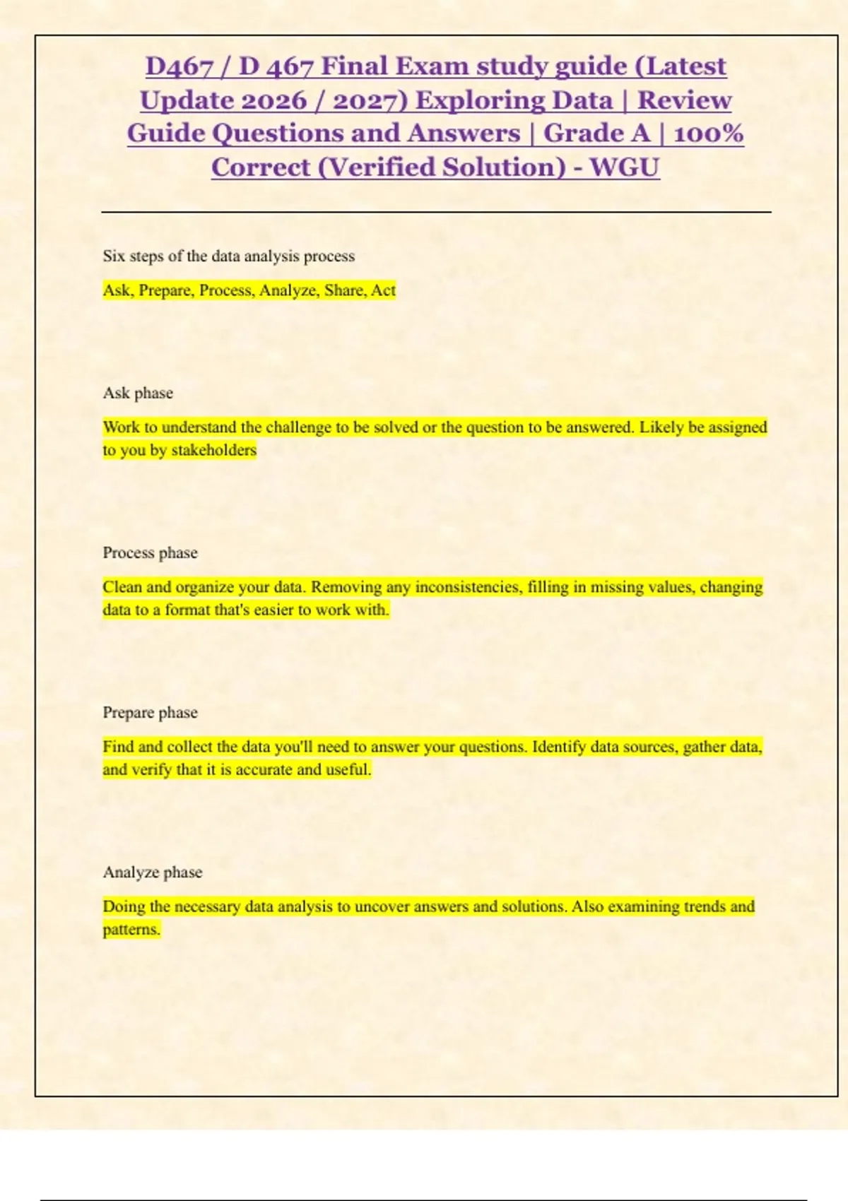 D467 / D 467 Final Exam study guide (Latest Update 2026 / 2027) Exploring Data | Review Guide Questions and Answers | Grade A | 100% Correct (Verified Solution) - WGU