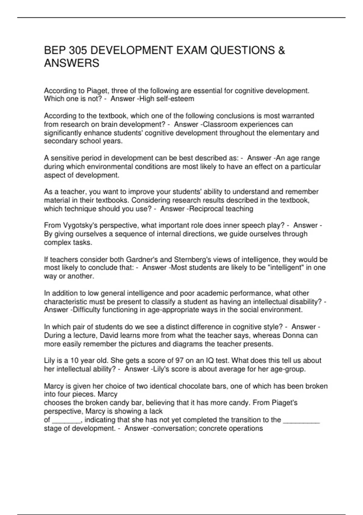 BEP 305 DEVELOPMENT EXAM QUESTIONS & ANSWERS 2 Exam (elaborations) BEP 305 QUESTIONS AND ANSWERS 3 Exam (elaborations) BEP 305 FINAL EXAM QUESTIONS & ANSWERS 4 Exam (elaborations) BEP 305 QUESTIONS AND ANSWERS 5 Exam (elaborations) BEP 305 FINAL EXAM QUESTIONS & ANSWERS 6 Exam (elaborations) BEP 305- FINAL QUESTUIONS & ANSWERS 7 Exam (elabora
