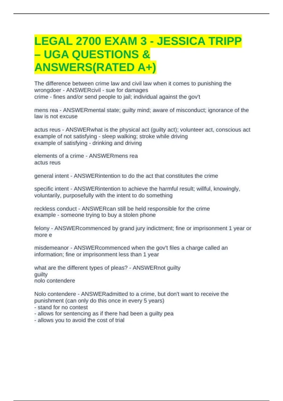 LEGL 2700 EXAM 1 JESSICA TRIPP CORRECT 100% EXAM BUNDLE