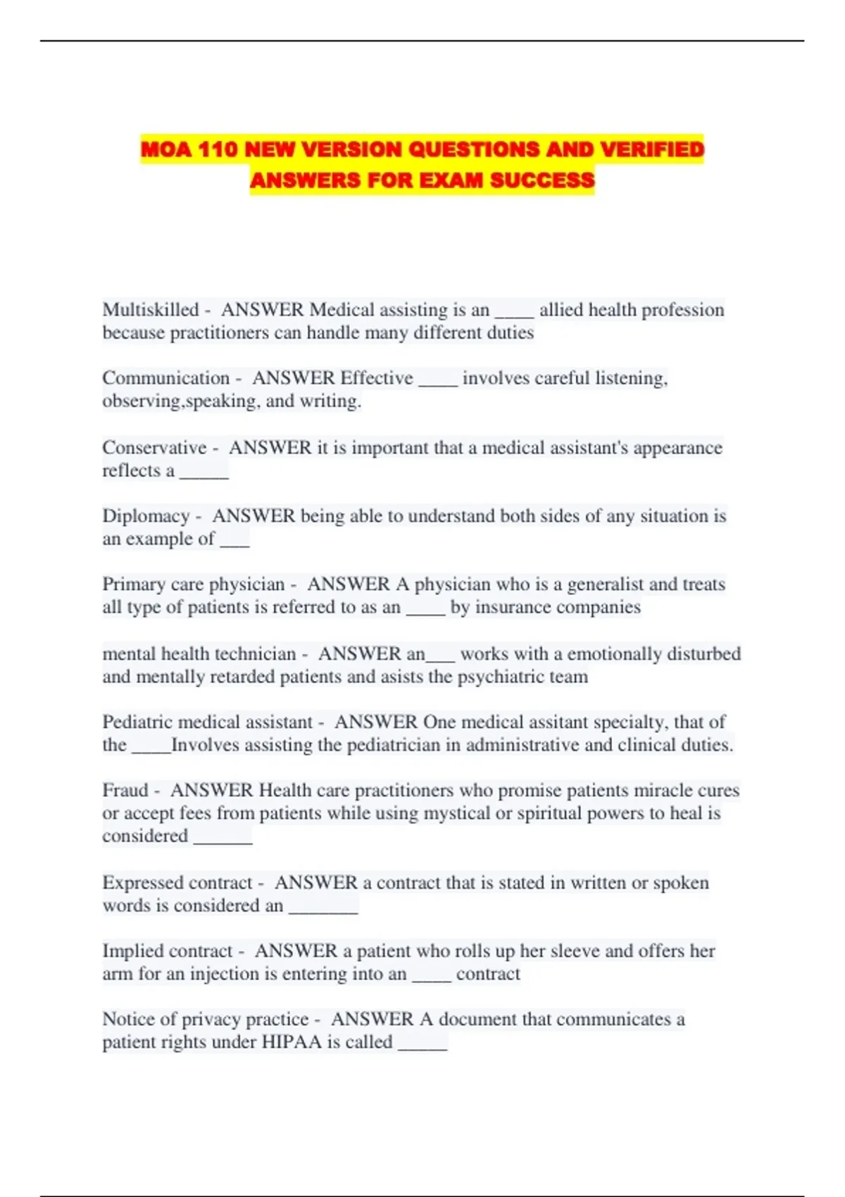 MOA 110 EXAM NEW VERSION QUESTIONS AND VERIFIED ANSWERS FOR EXAM SUCCESS