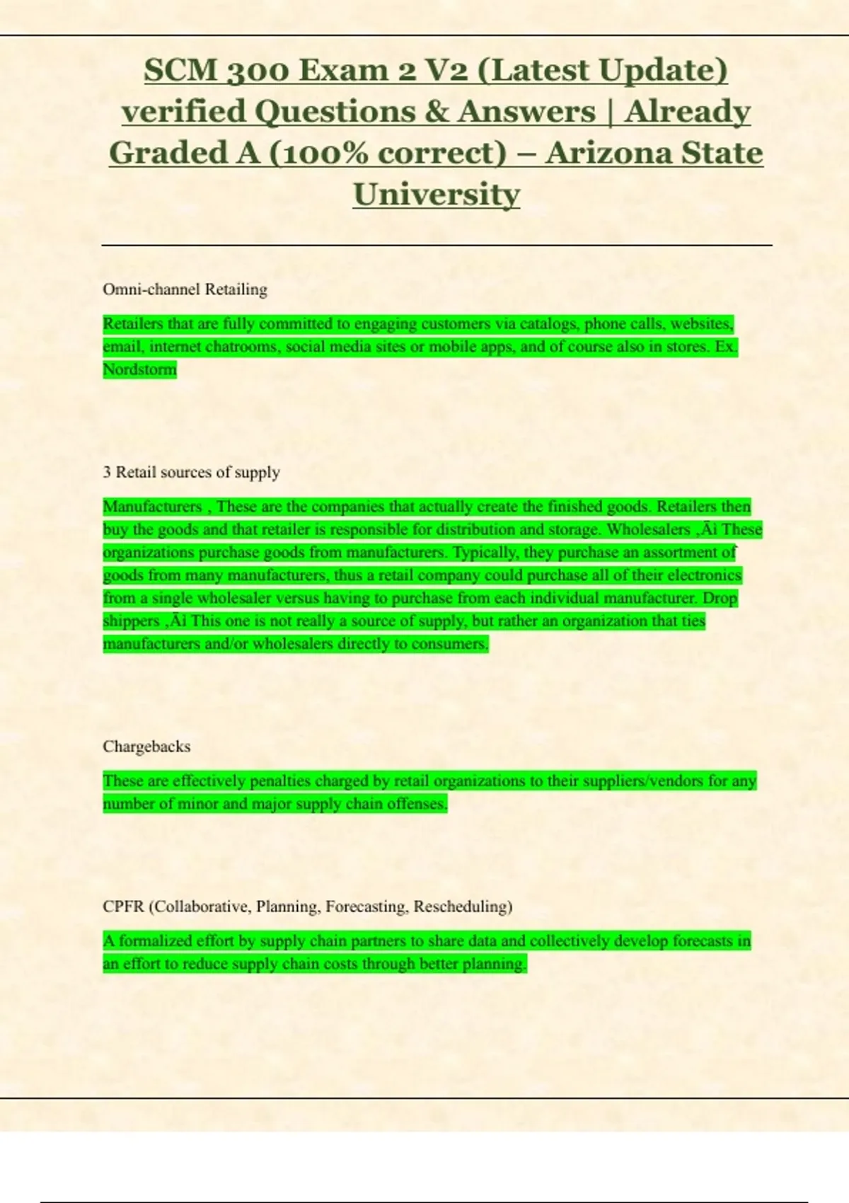SCM 300 Exam 3 V2 (Latest Update) verified Questions & Answers | Already Graded A (100% correct) – Arizona State University