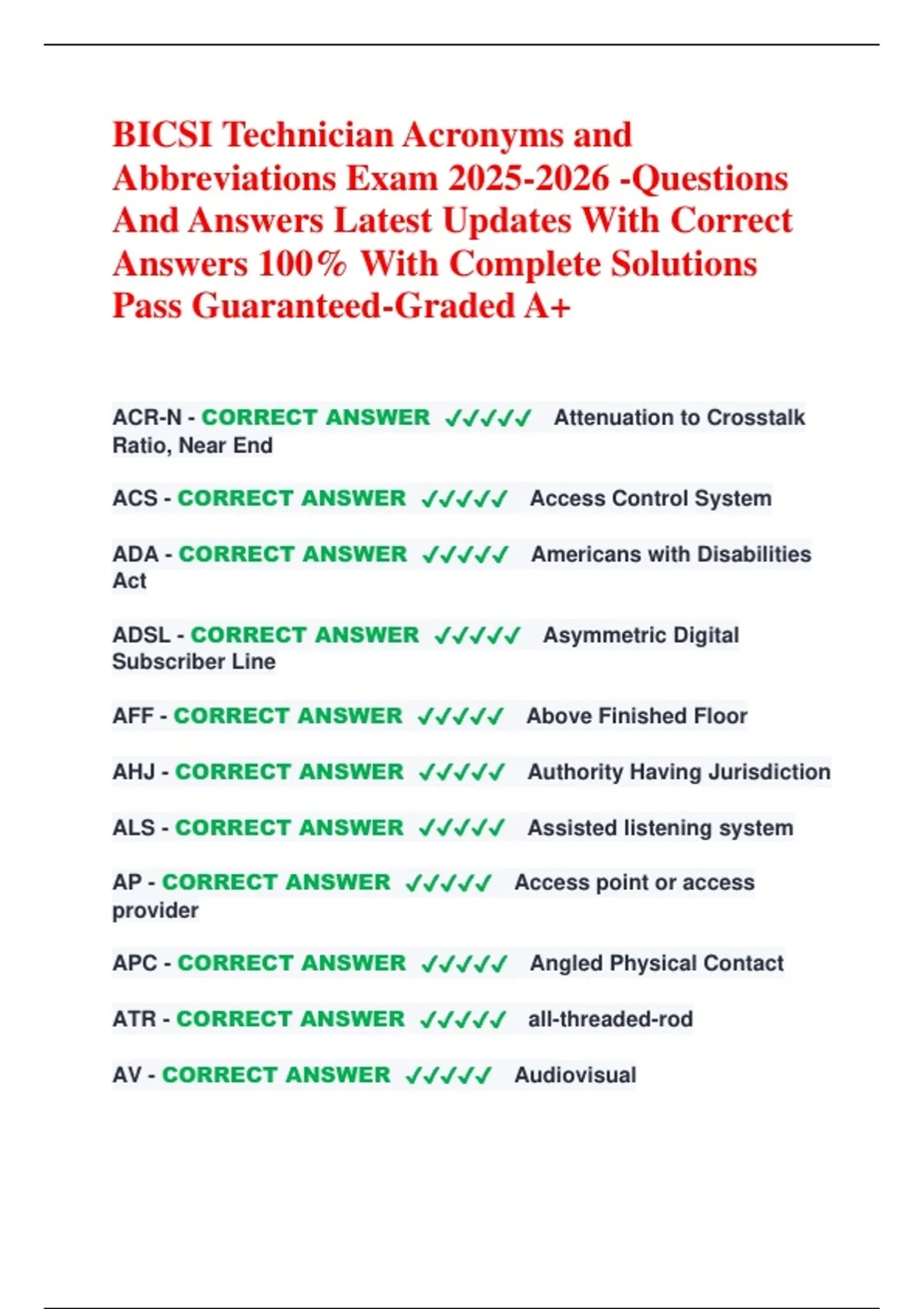 1 Exam (elaborations) BICSI Technician – Acronyms and Abbreviations Exam Study Guide & Practice Test (2025–2026) 2 Exam (elaborations) BICSI Technician – Acronyms and Abbreviations Exam Study Guide & Practice Test (2025–2026) 3 Exam (elaborations) BICSI Technician – Acronyms and Abbreviations Exam Study Guide & Practice Test (2025–2026) 4 Exam (