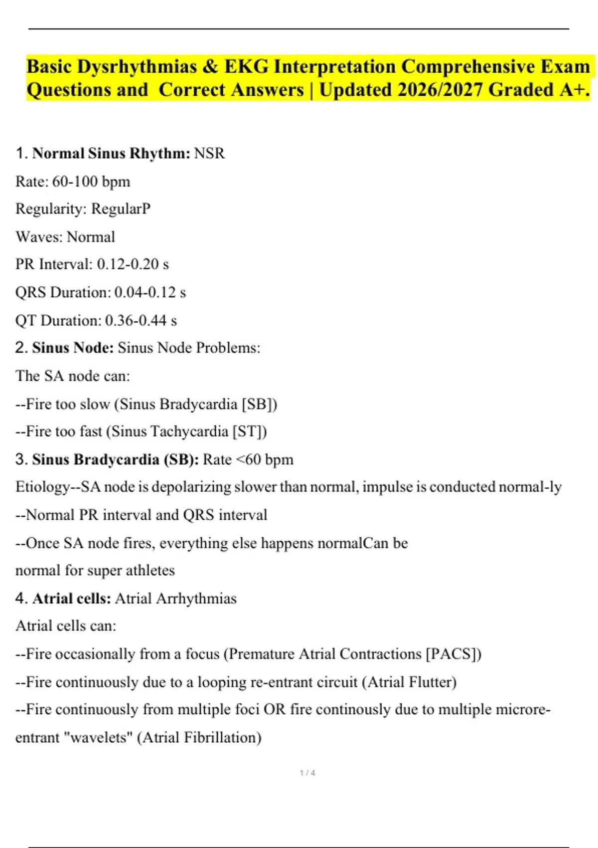 EKG Interpretation Questions Flashcards – Exam Questions & Answers, Updated 2026/2027 & Basic Dysrhythmias & EKG Interpretation Comprehensive Exam Questions and Correct Answers | Updated 2026/2027 Graded A+.