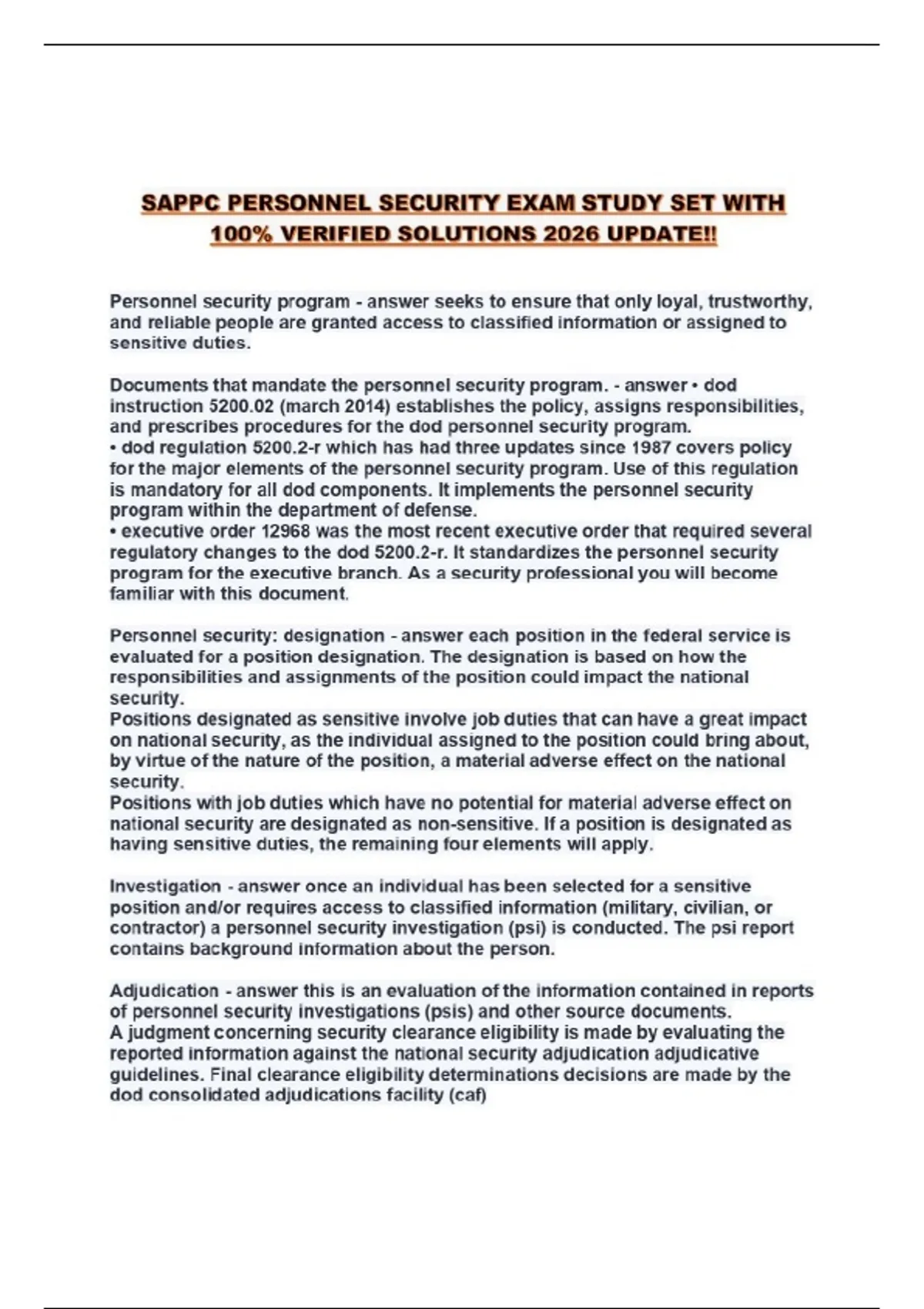 SAPPC PERSONNEL SECURITY EXAM STUDY SET WITH 100% VERIFIED SOLUTIONS 2026 UPDATE!!