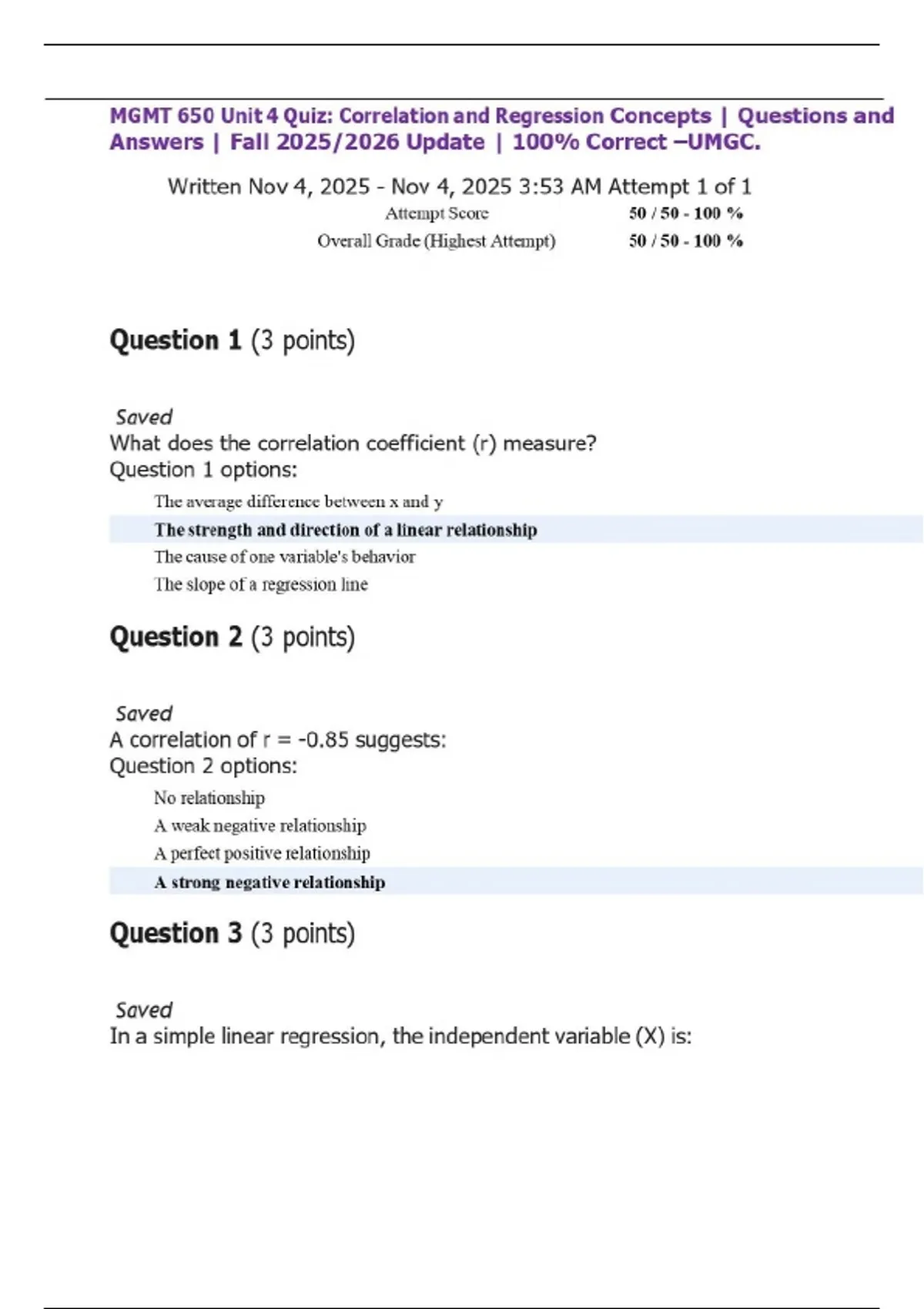 MGMT 650 Bundled Quizzes and Exams with complete solutions.