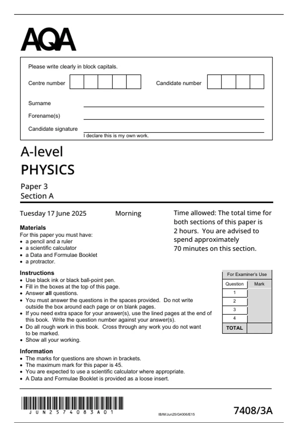 2025 AQA A-Level Physics Paper 3A Question Paper