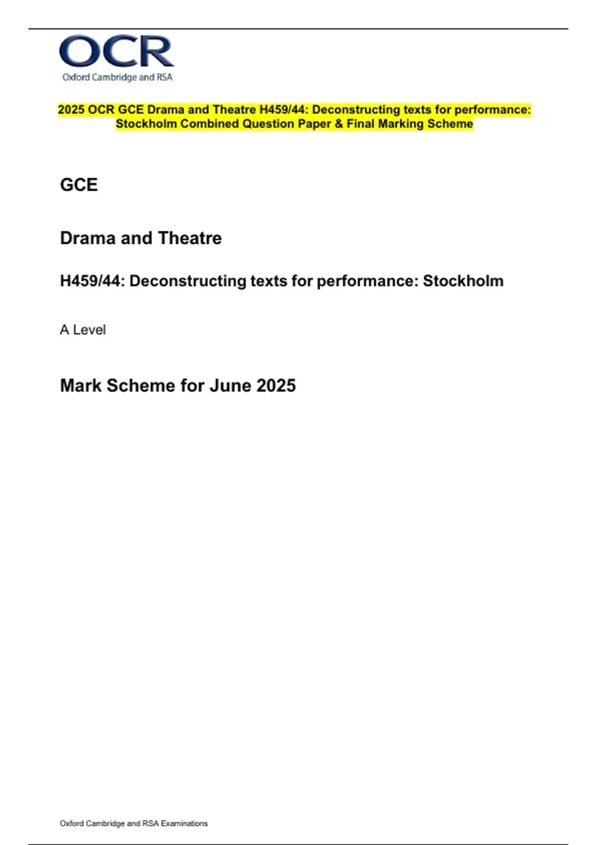 PACKAGE-::2025 OCR GCE Drama and Theatre Exams| Question Paper with Complete Marking Scheme