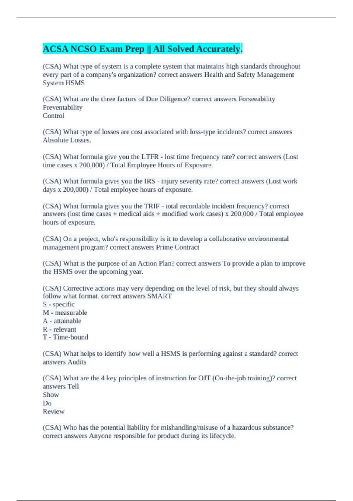 NCSO || 100% Verified Answers.