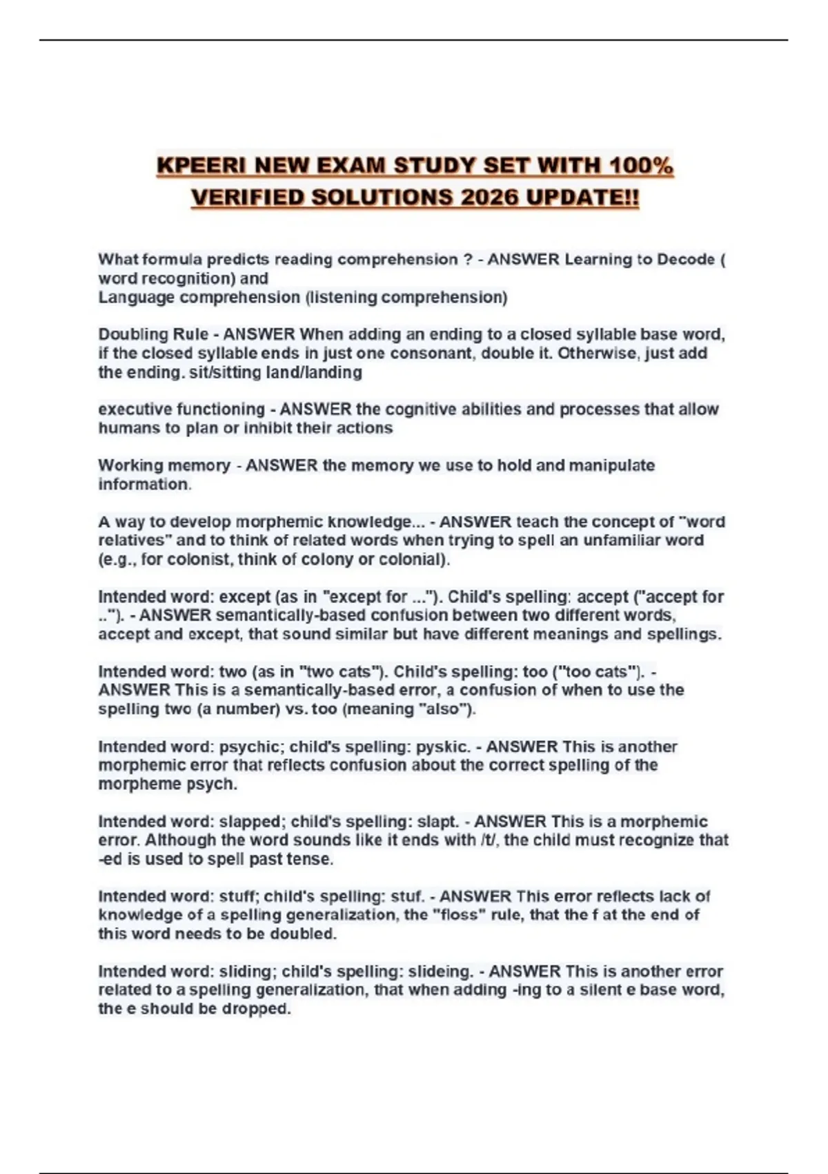 KPEERI EXAM PREP 2 QUESTIONS AND CORRECT ANSWERS 100% VERIFIED!!