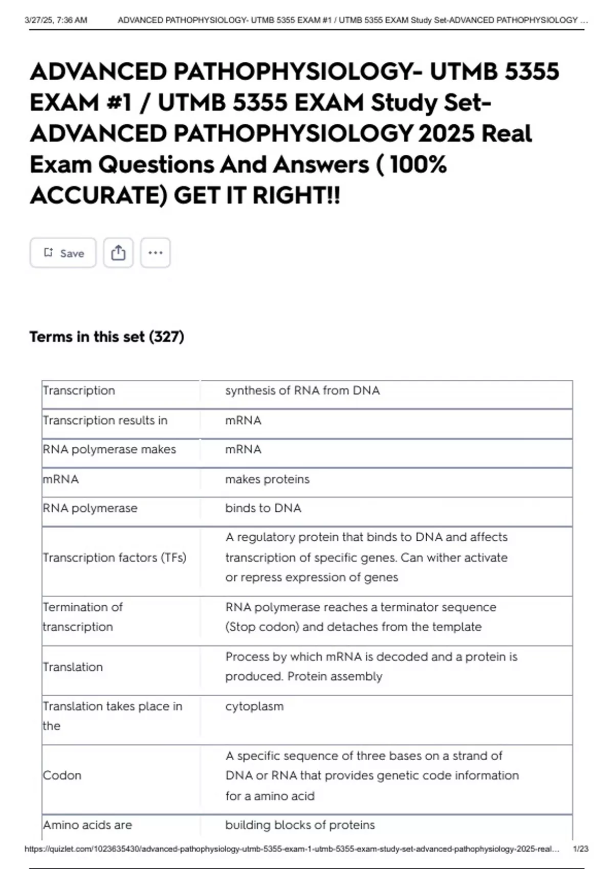 PACKAGE DEAL FOR ADVANCED PATHOPHYSIOLOGY- UTMB 5355 EXAM #1 Exam (2025) Exam Questions & Answers | Latest Already Graded A+ UPDATE 2025|2026!! STUDY GUIDE EXAM