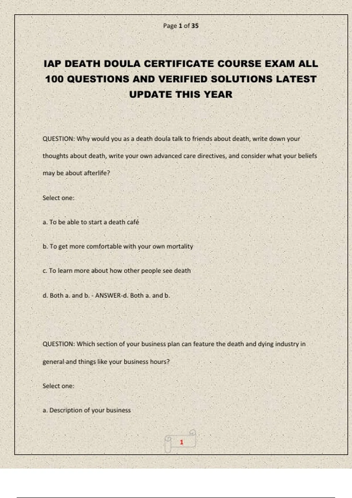 IAP DEATH DOULA CERTIFICATE COURSE EXAM