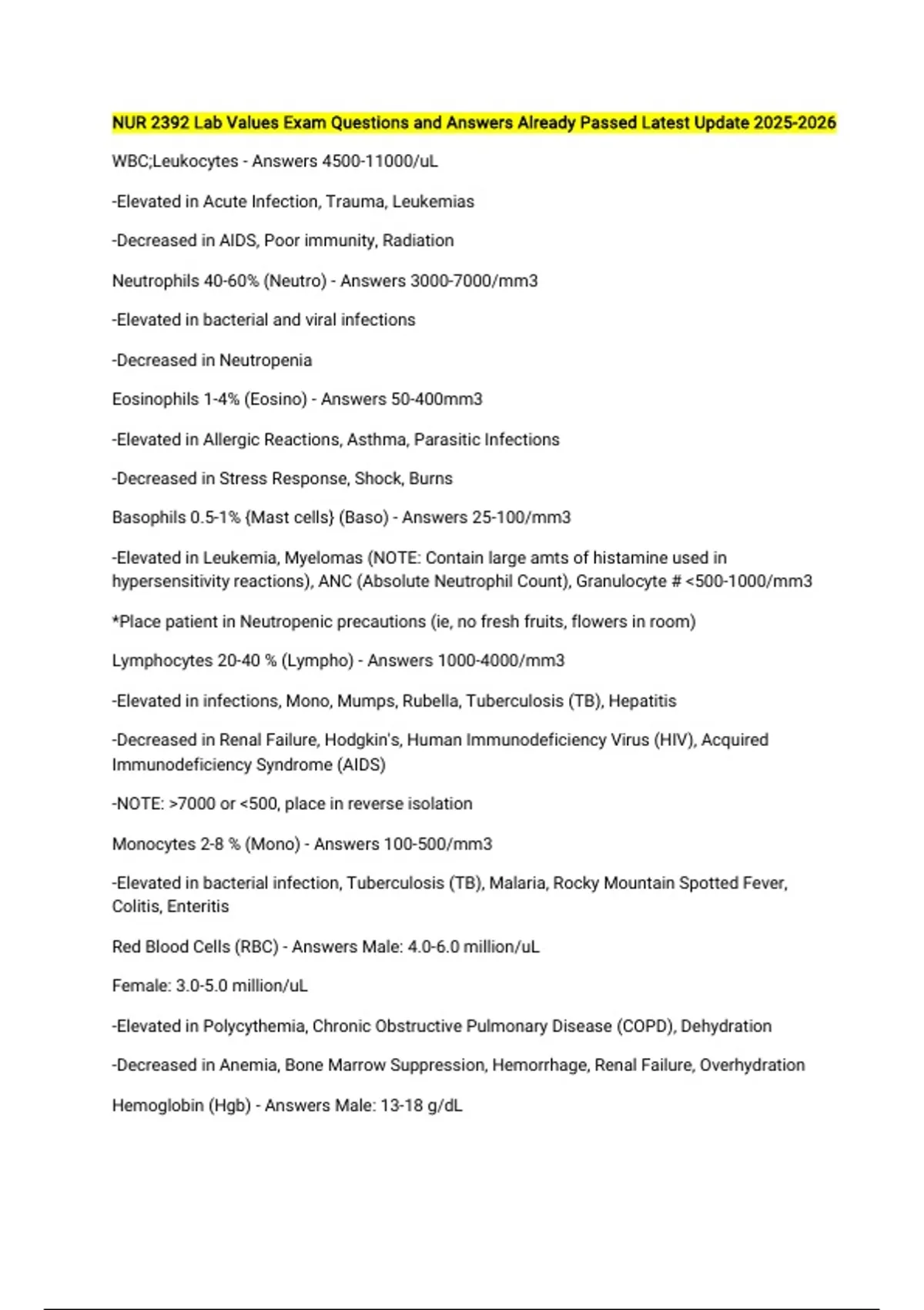 NUR 2392 BUNDLED QUESTIONS ANSWERED CORRECTLY LATEST UPDATE 2025/2026