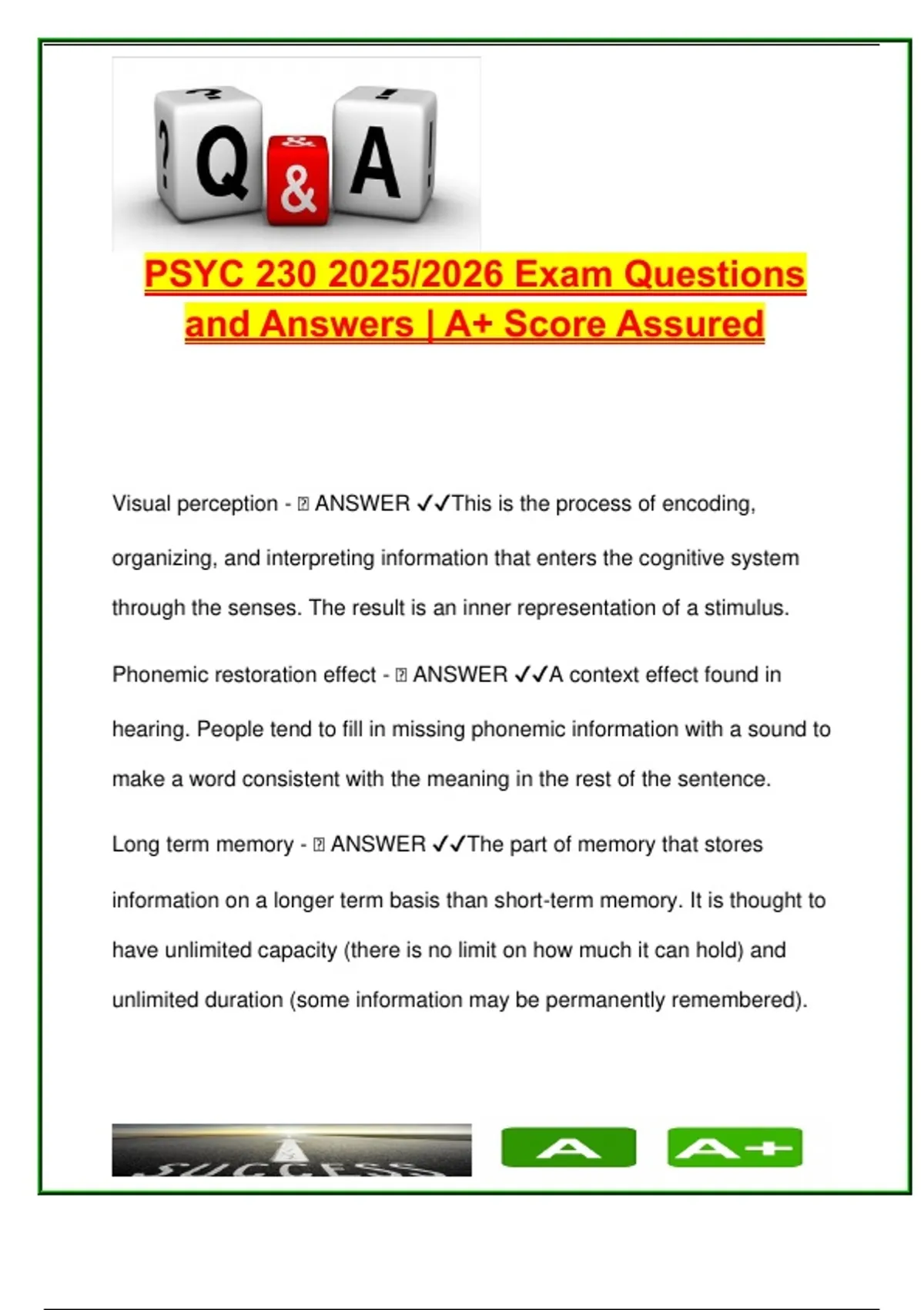 PSYC 230 EXAM COMPLETE PACKAGE DEAL