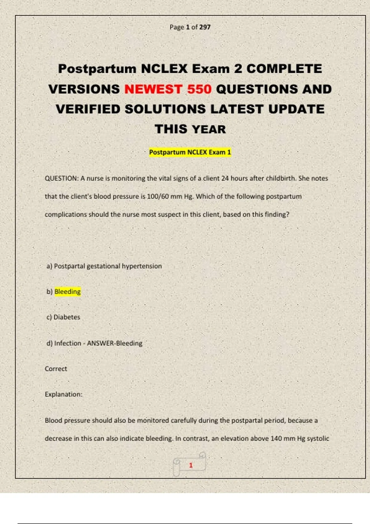Postpartum NCLEX Exam