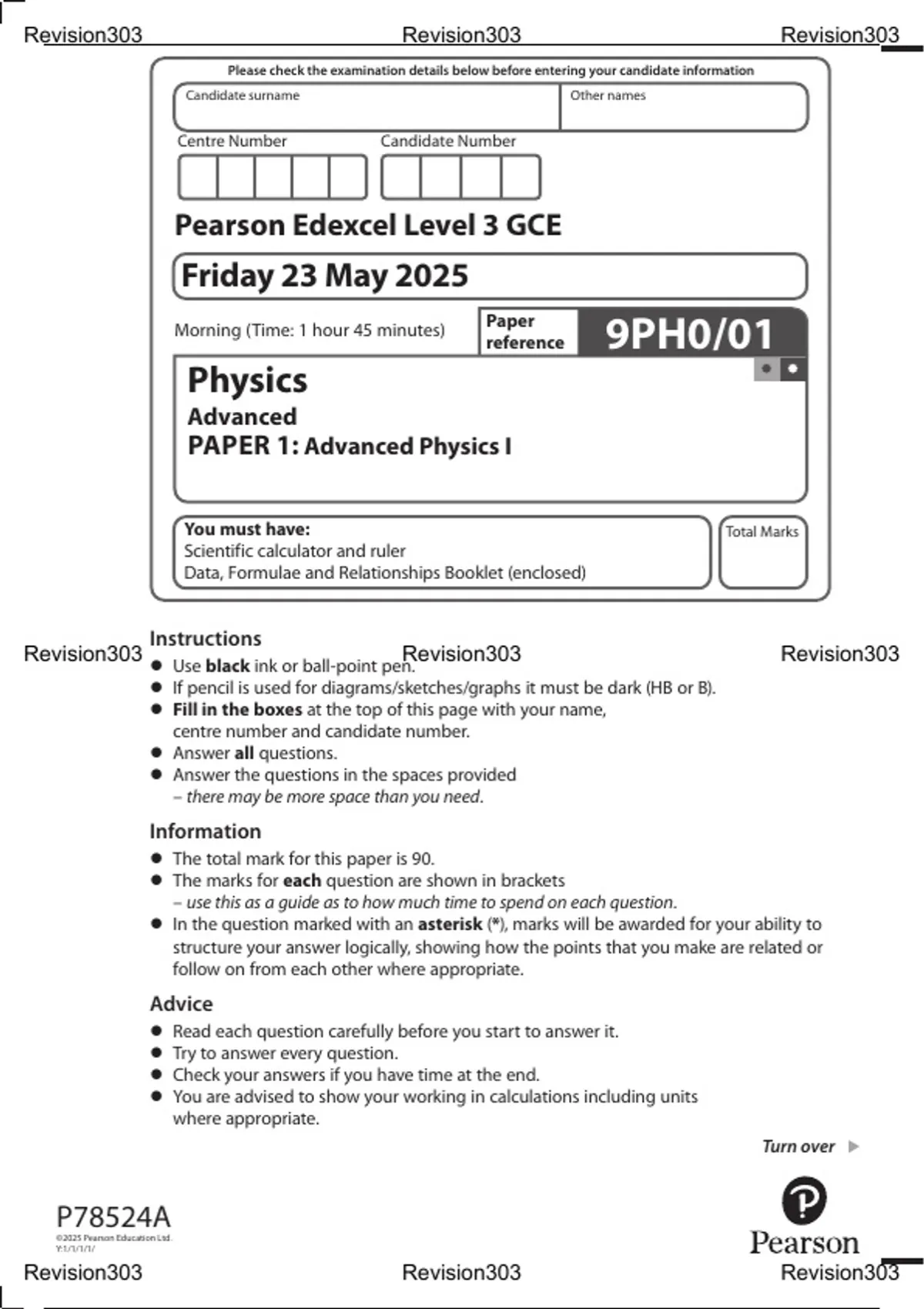 Edexcel 2025 A level Physics Papers 1, 2 & 3 with Mark schemes