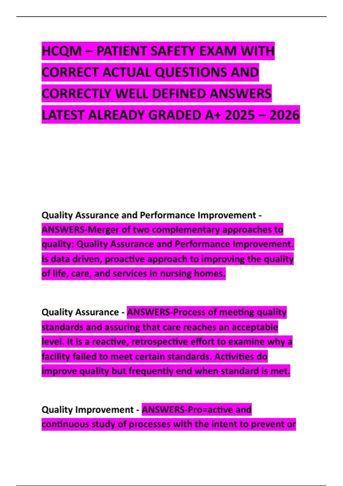 BUNDLE FOR HCQM EXAMS LATEST BUNDLE FOR HCQM EXAMS LATEST