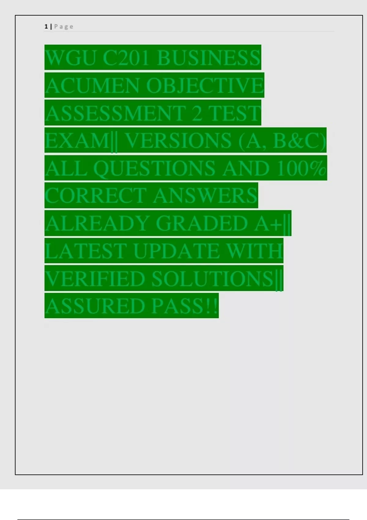 Complete WGU Business Acumen + Healthcare Analytics bundle. Includes all versions of C201 OA exams and D514 Healthcare Analytics with 100% verified A+ answers. Perfect for guaranteed success and fast mastery.