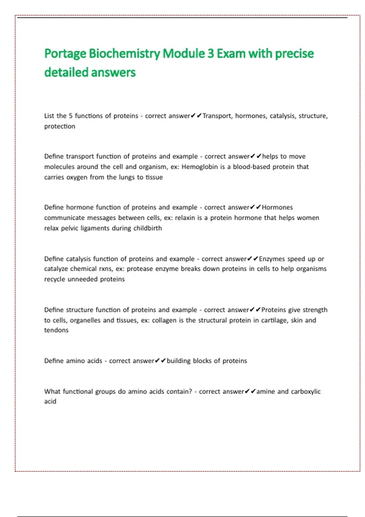 Portage Biochemistry Module 3 Exam with precise detailed answers